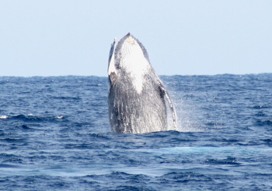沖縄北谷発のプライベートホエールウォッチングツアー。完全貸切のボートで、ザトウクジラとの迫力満点の遭遇を楽しめます。新艇「ハイサイ号」にはトイレ、シャワー、エアコン完備で快適!午前・午後から選べる半日コースもあり、観光の合間にもぴったりです。